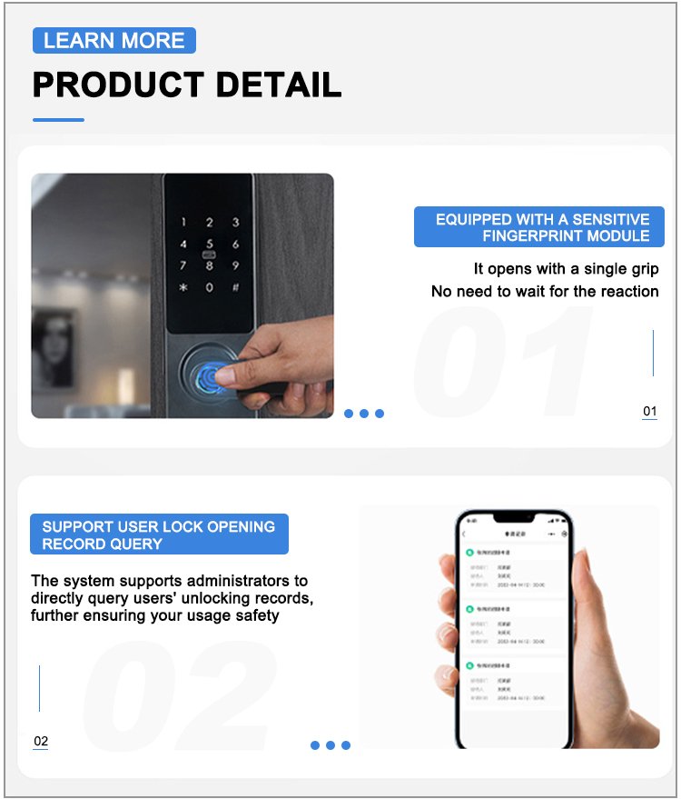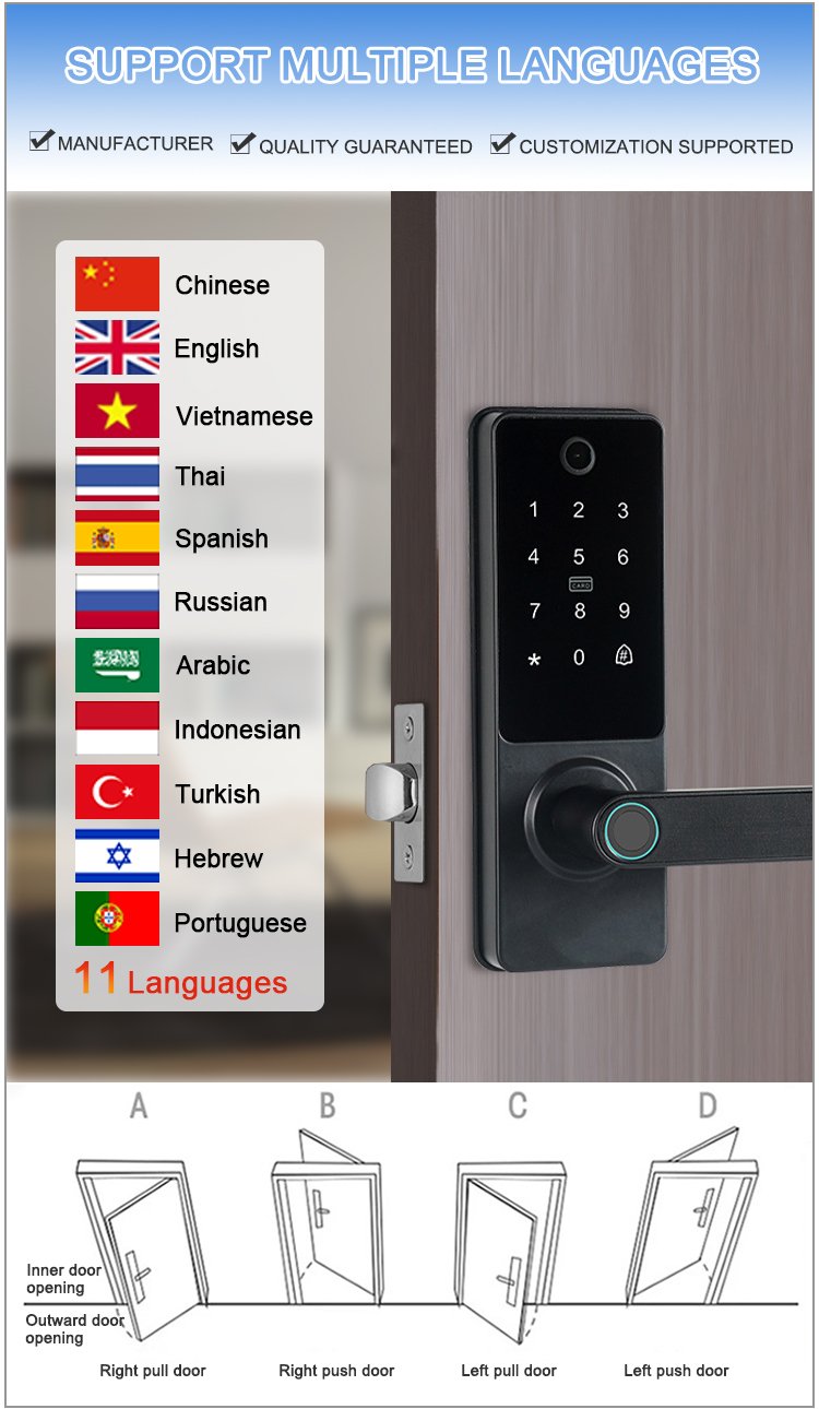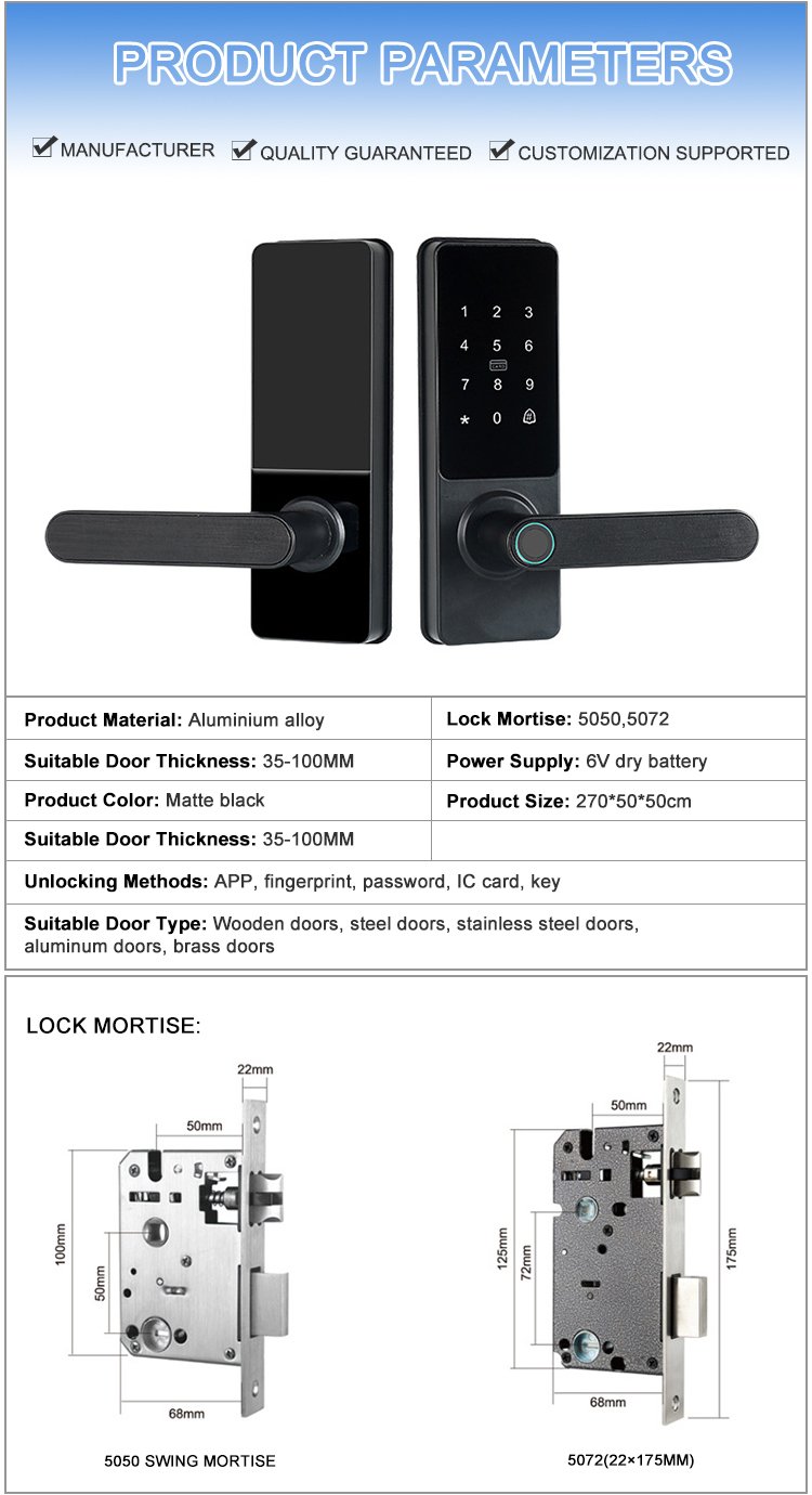 Unlocking Method: APP, Fingerprint, Password, Card, Key, Combination unlock