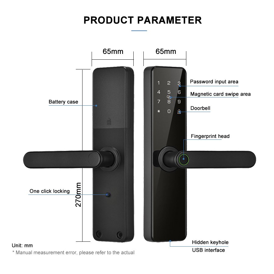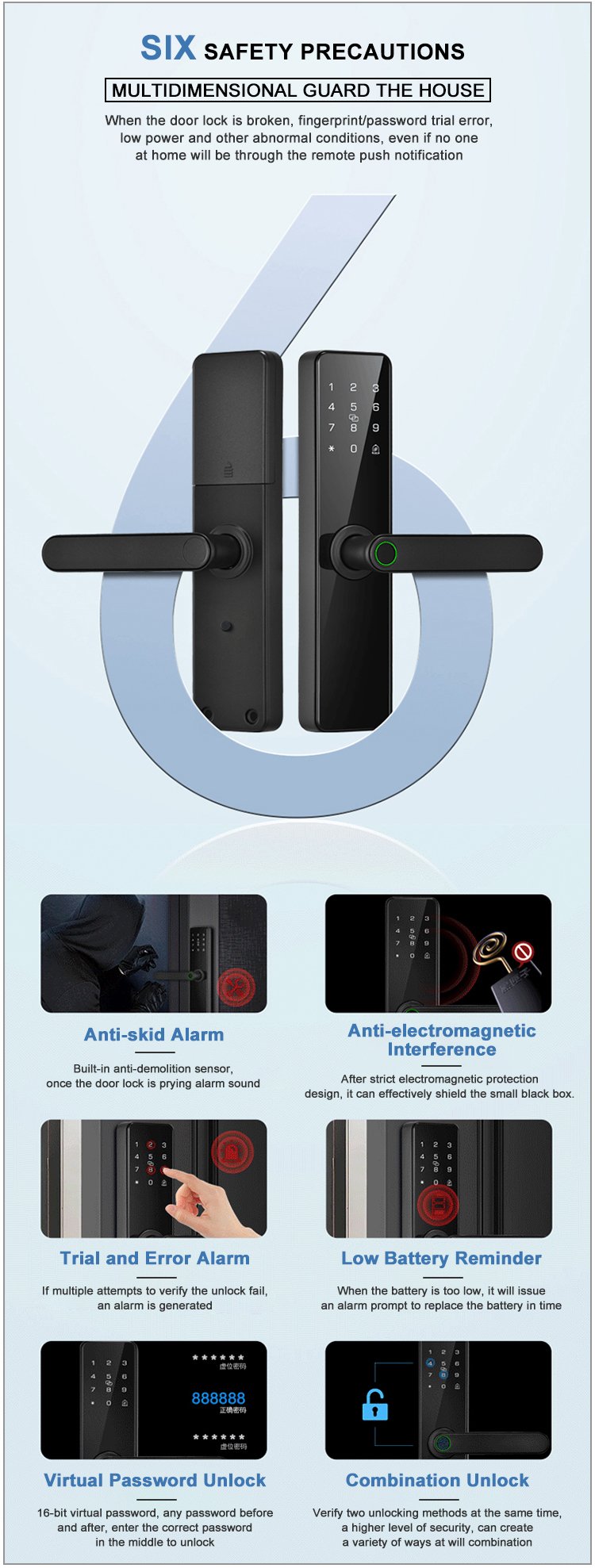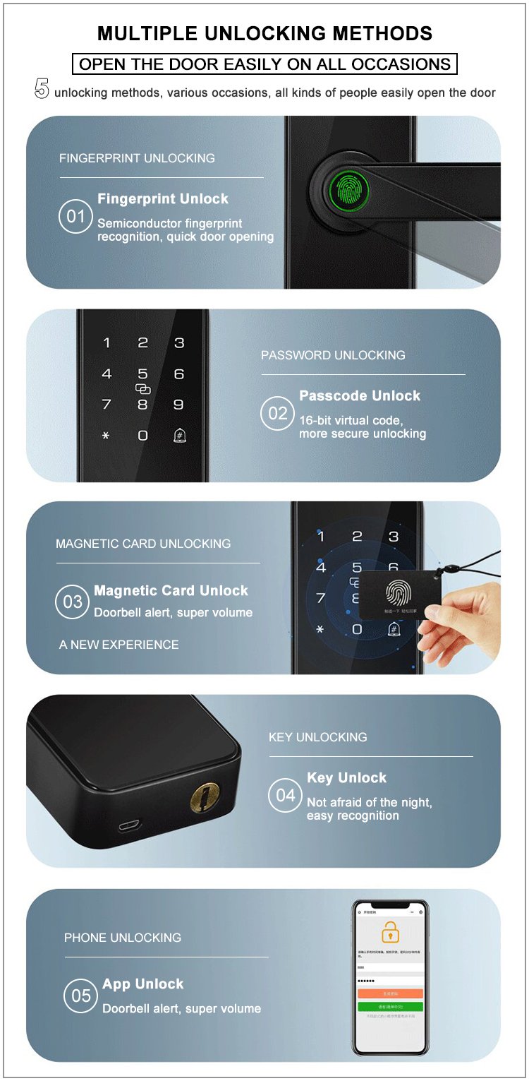 Unlocking Method: WiFi TUYA/TTlock APP, Fingerprint, Password, Smart Card, Key