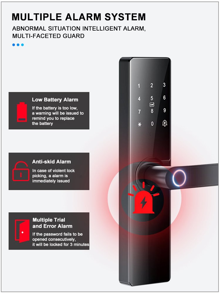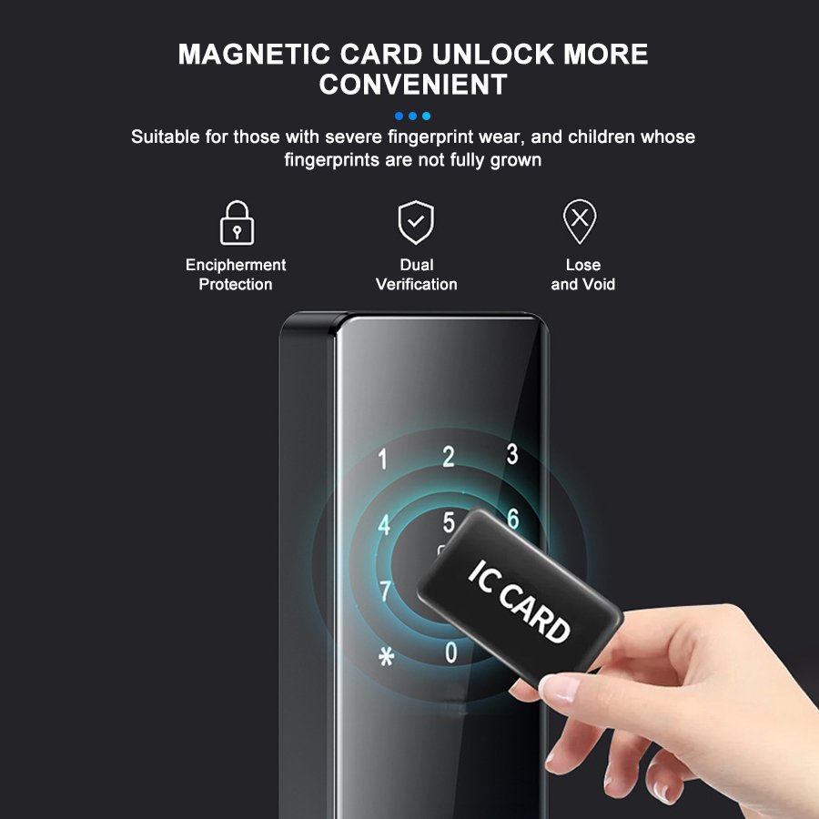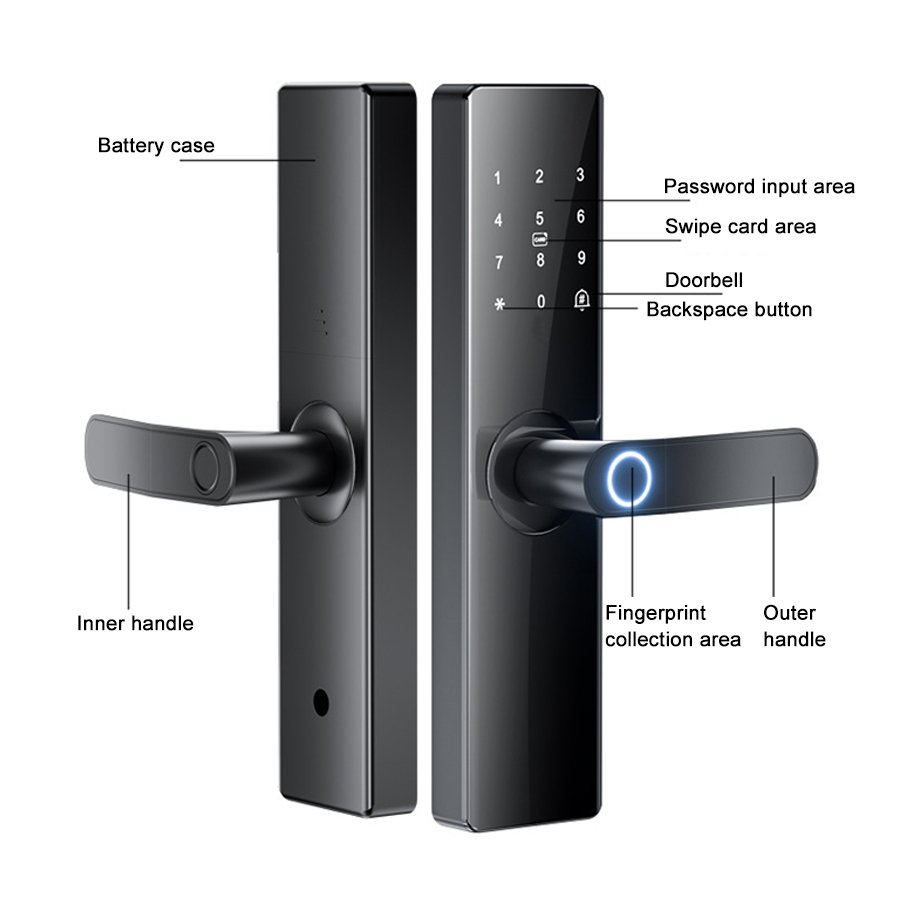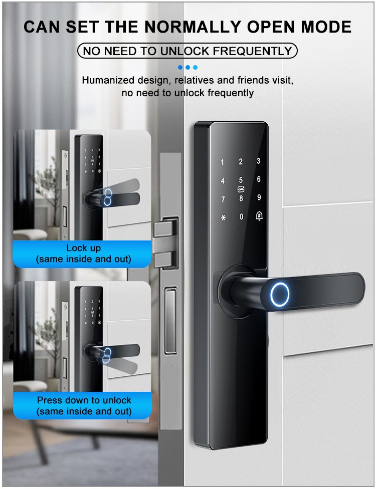 Unlocking Method: TUYA/TTlock APP, Fingerprint, Password, Card, Key, Combination unlock