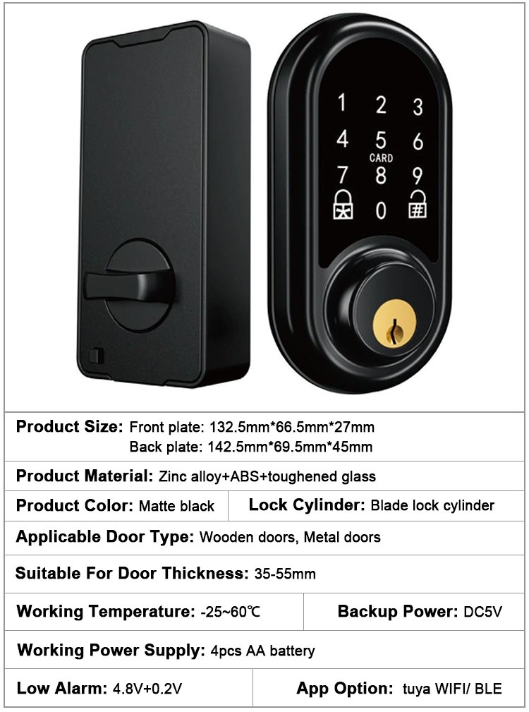 Unlocking Method: APP, Password, Card, Key, NFC, Bracelet