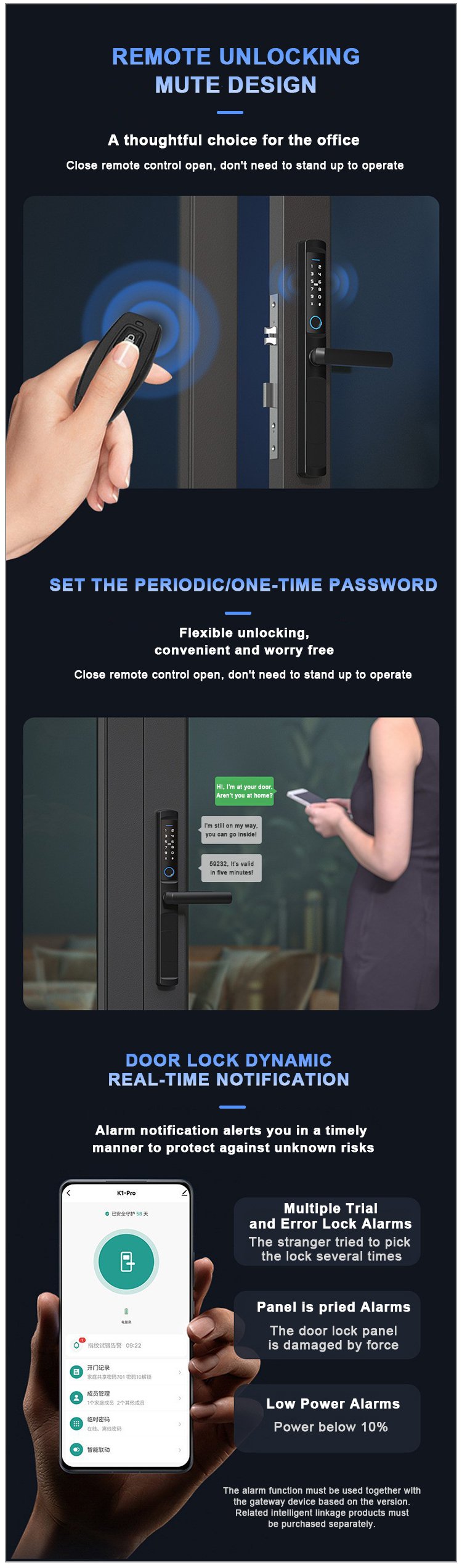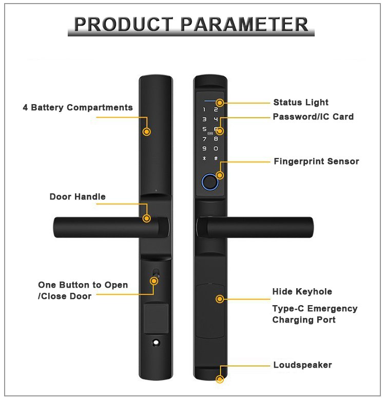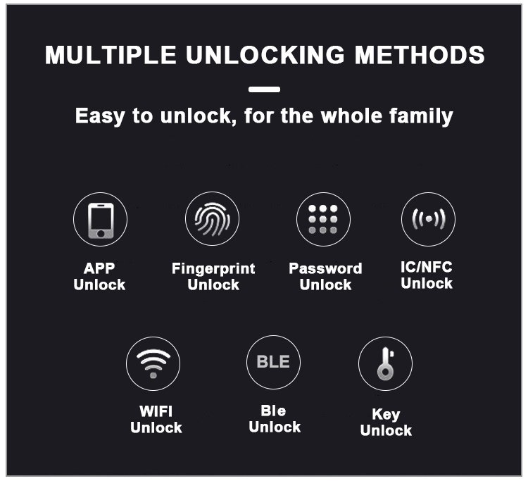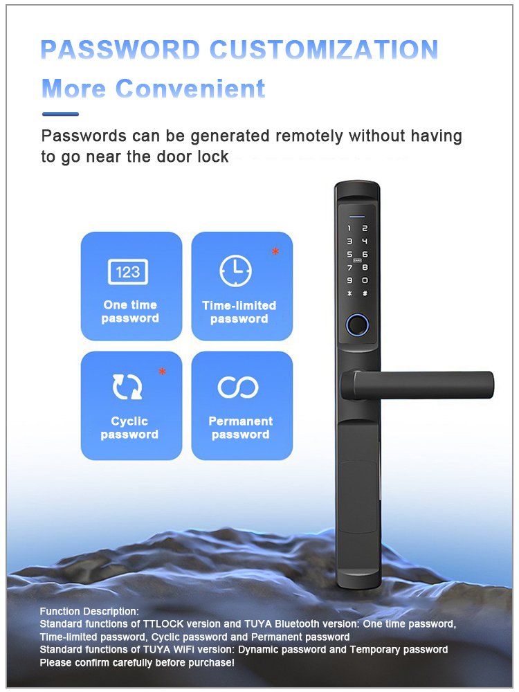 Unlocking Method: TUYA APP, Fingerprint, Password, Card, Key, Combination unlock