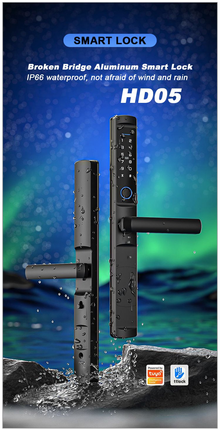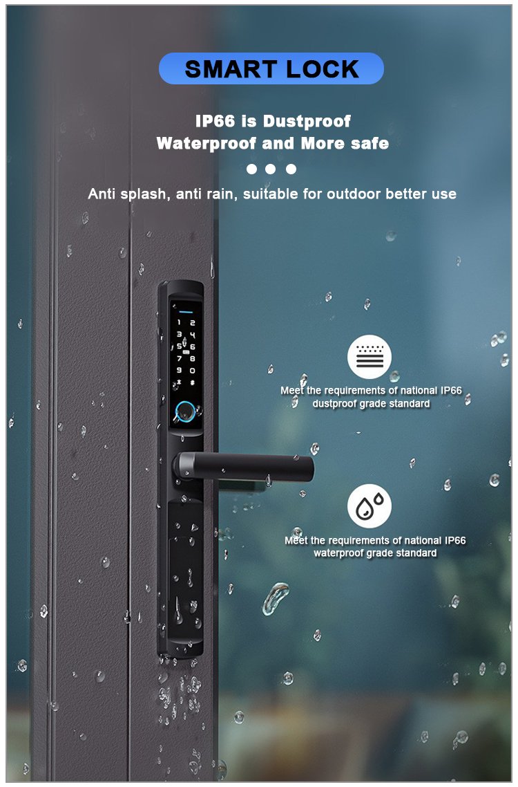 HD05 CAIYI YiTechE IP66 Waterproof Outdoor Zinc alloy Tuya TTlock Biometric Fingerprint Digital Electronic Smart Aluminum Frame Door Lock for Aluminium Gate