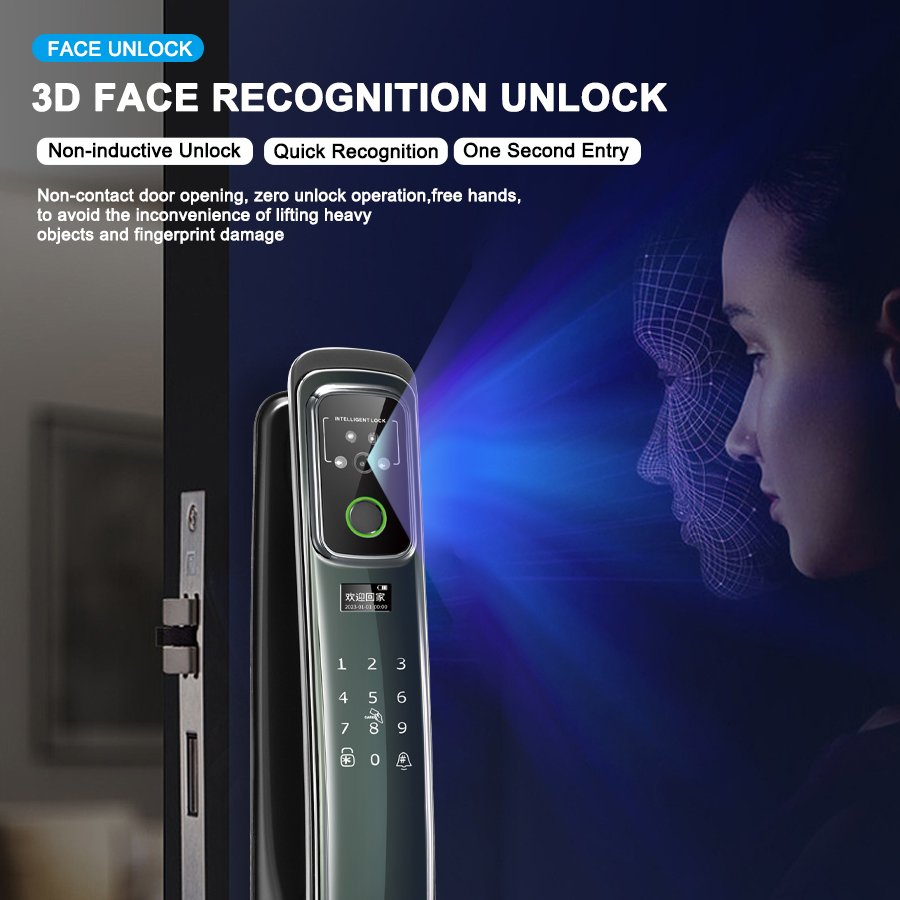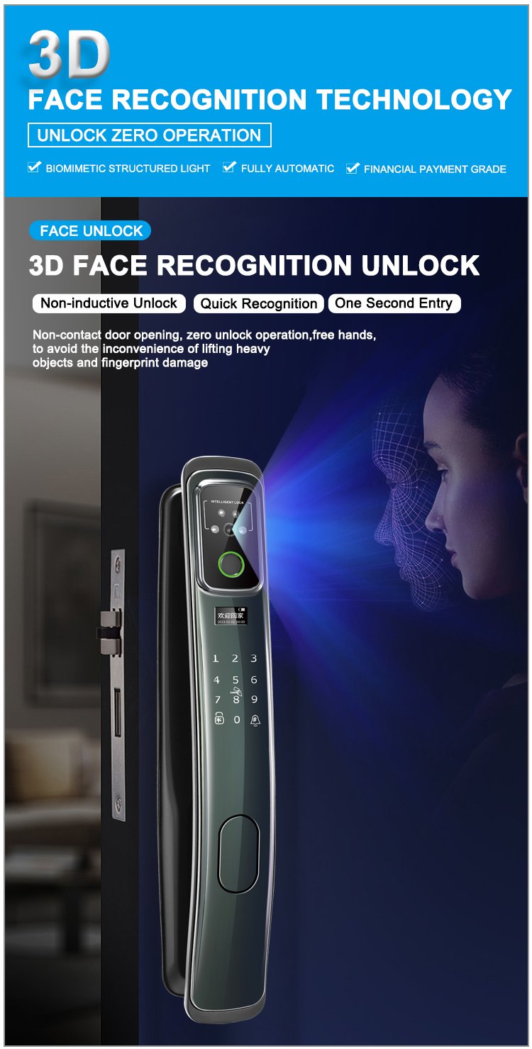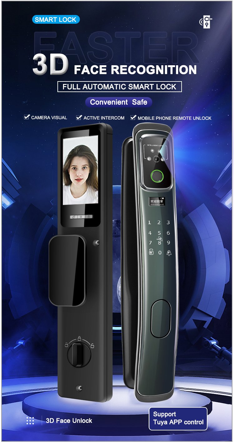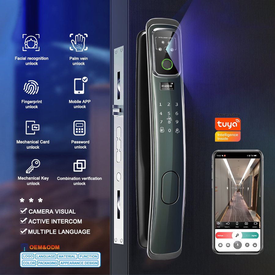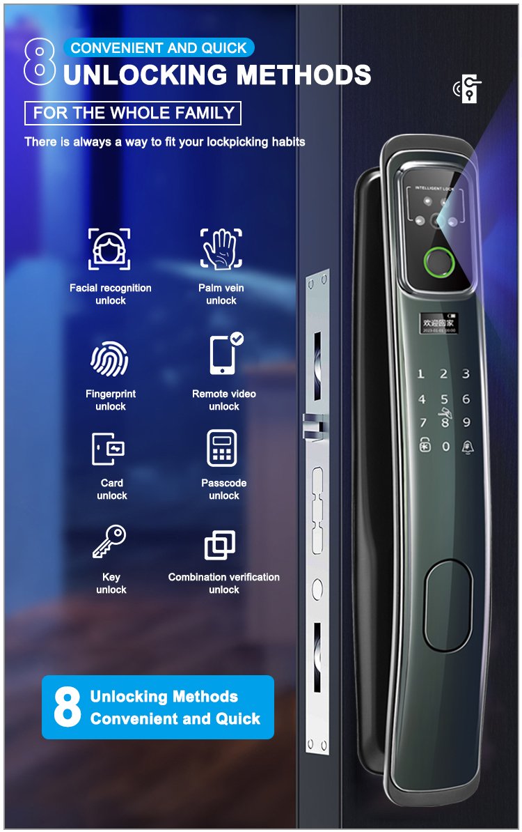 Unlocking Method: 3D Face recognition, TUYA APP, Palm vein, Fingerprint, Password, Card, Key, Combination unlock
