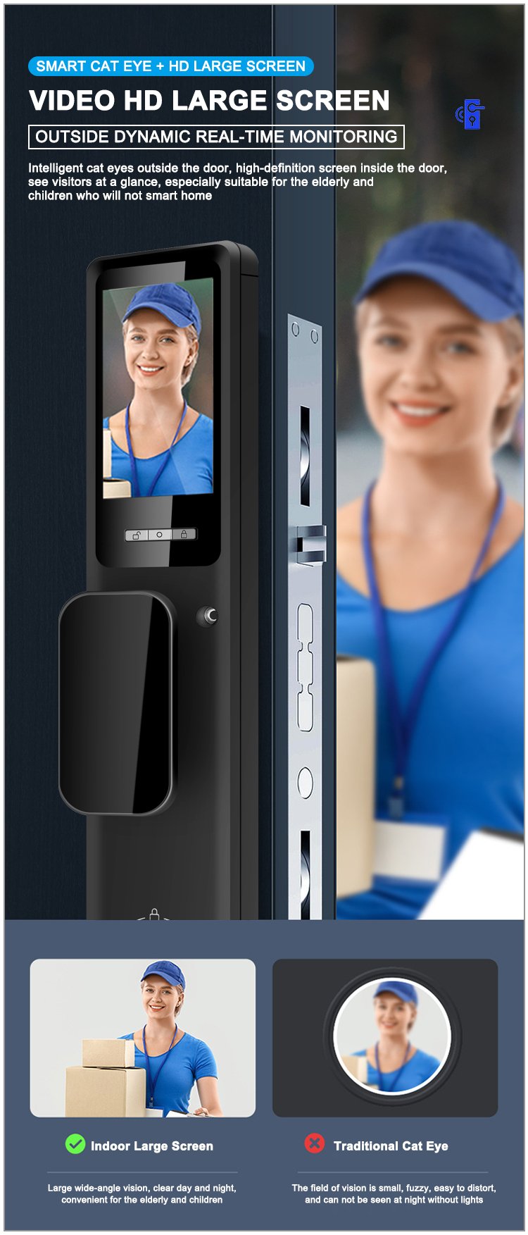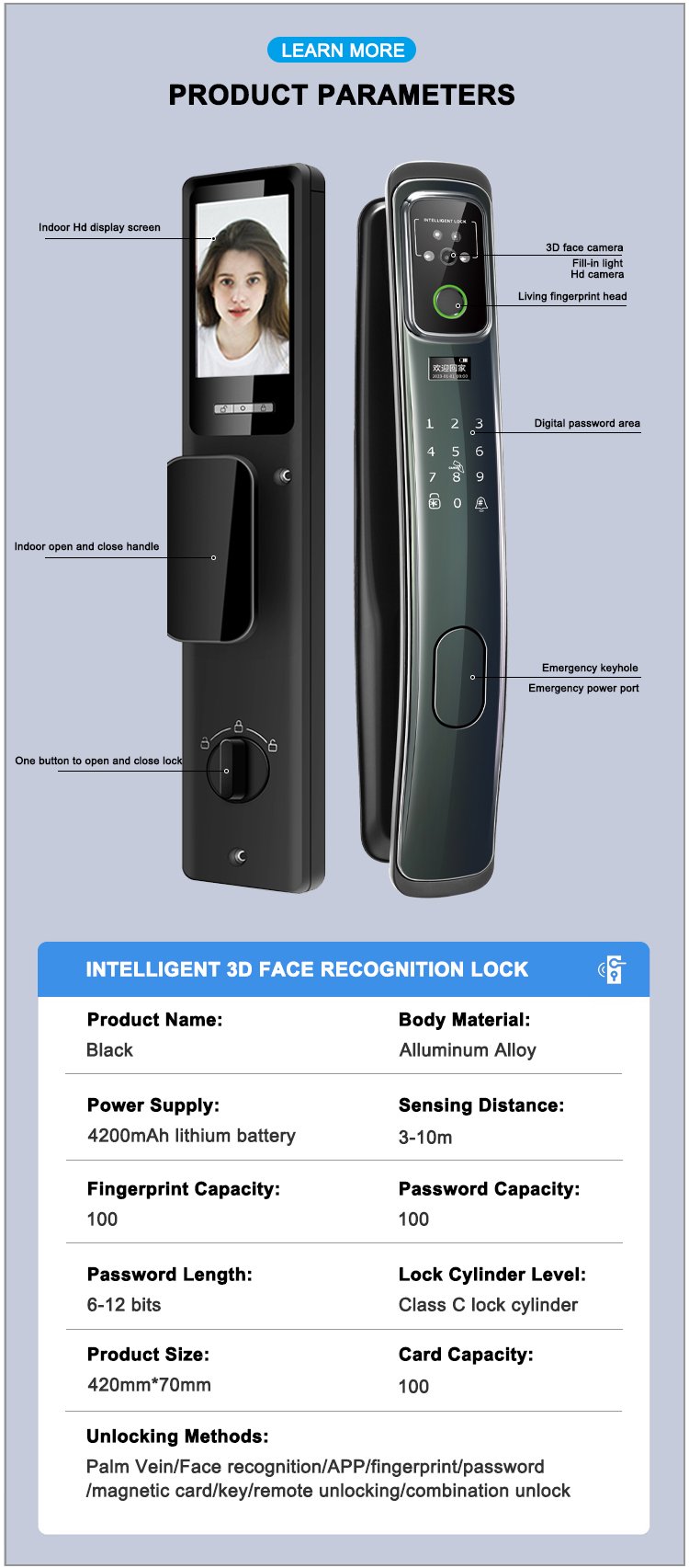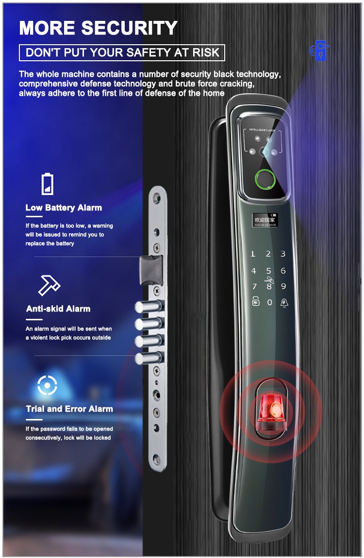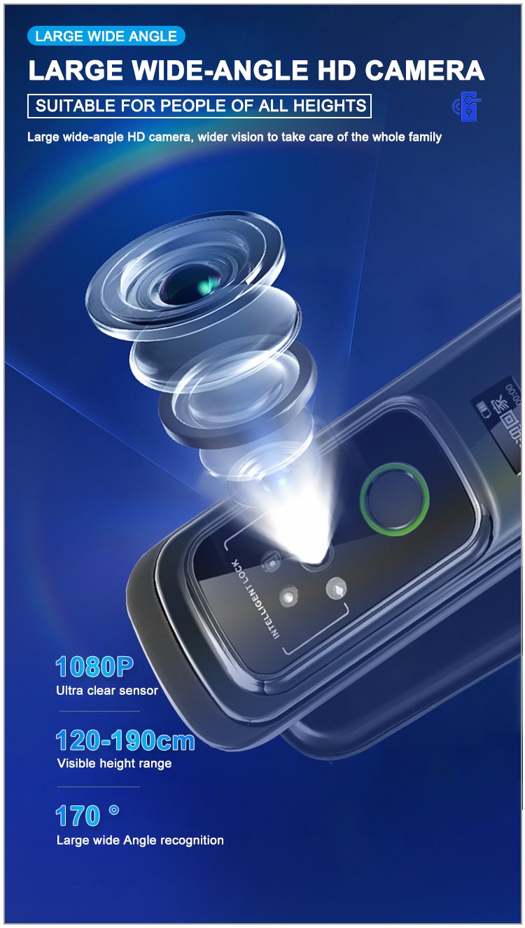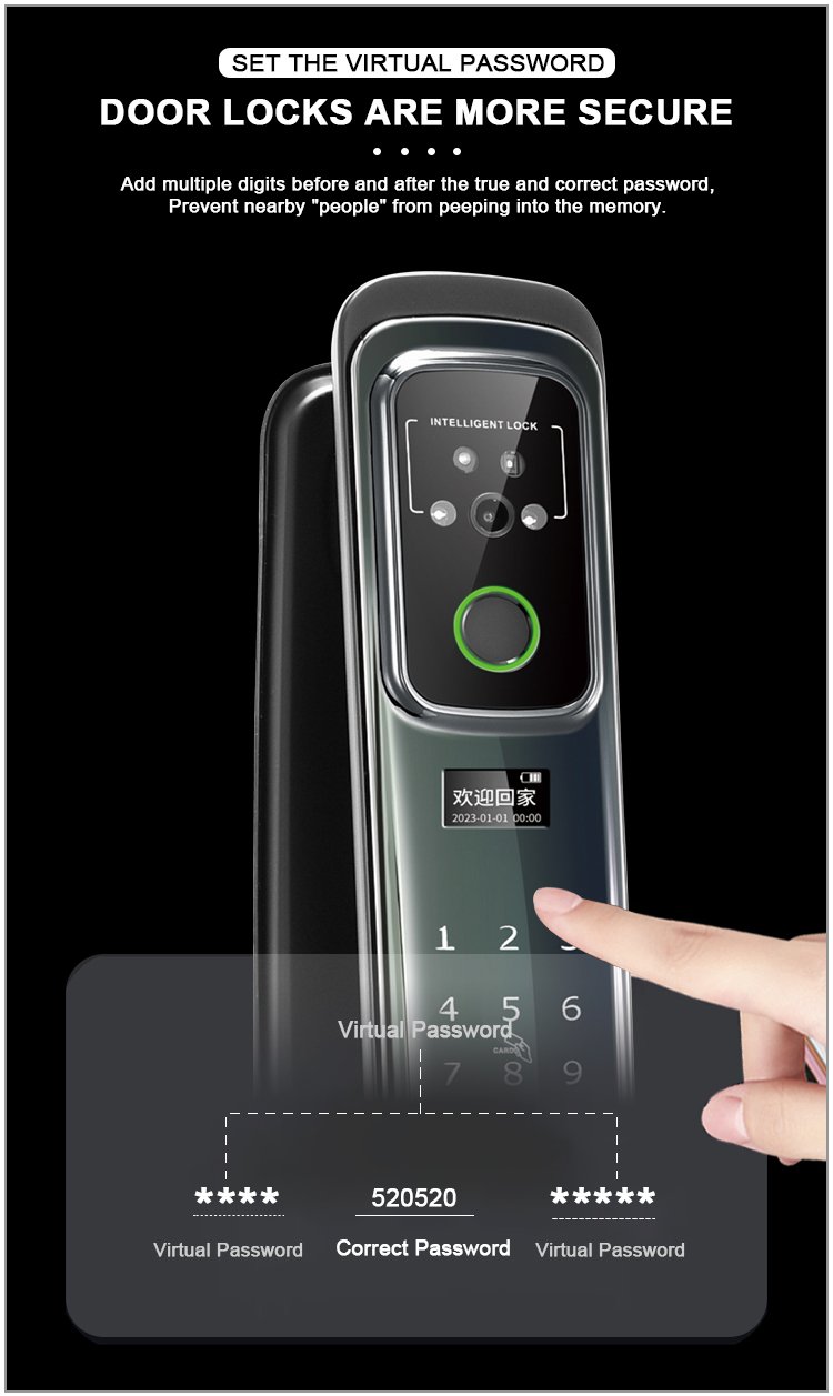 Unlocking Method: 3D Face recognition, TUYA APP, Palm vein, Fingerprint, Password, Card, Key, Combination unlock