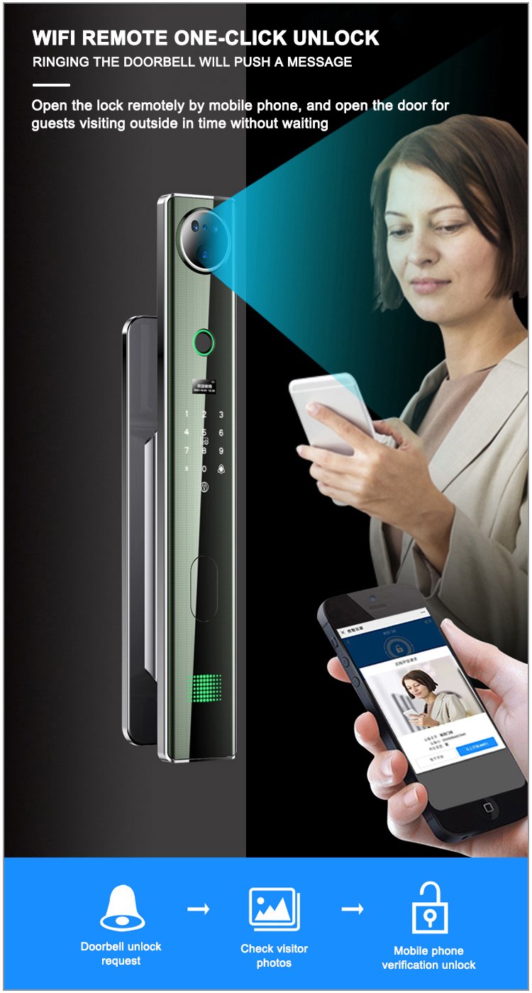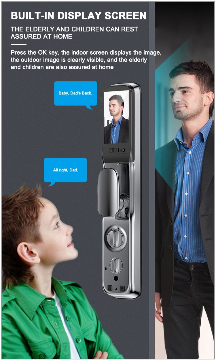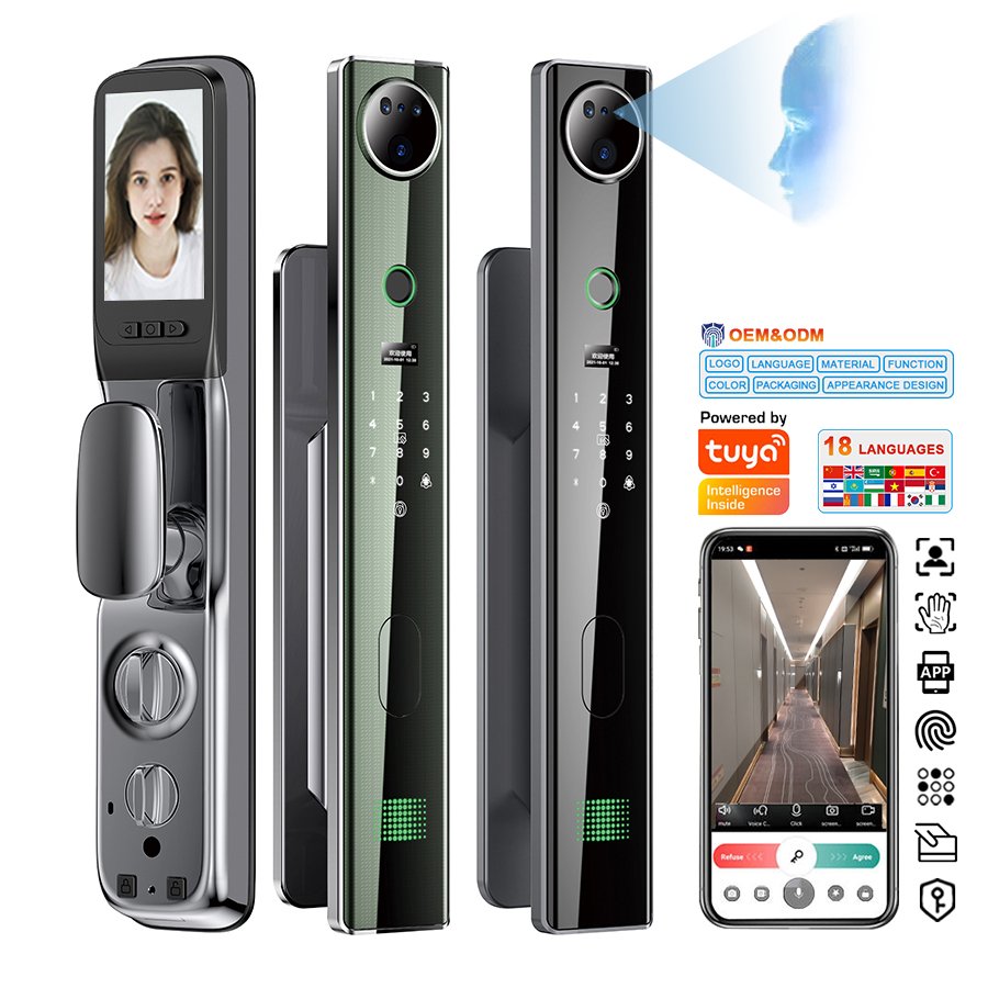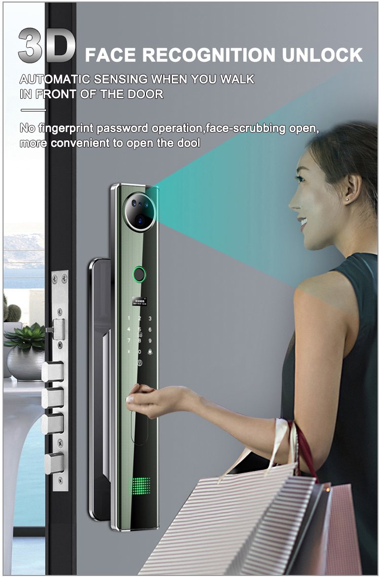 K912Plus 3D Face Recognition WiFi Tuya Finger Scan Digital Doorlocks Electronic Smart Lock with Camera Video Intercom Surveillance
